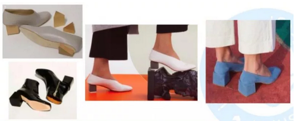造型随功能改变而变的设计理念让建筑跟在本季出尽风头。正方形、圆形和三角形等几何图形都以超大尺寸呈现,并与鞋品外观形成鲜明反差,彰显现代主义摩登气质。